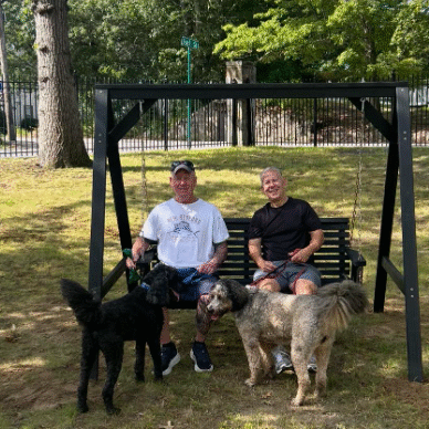 We are excited to share that we just installed Adult double swings, Come on down and enjoy them.